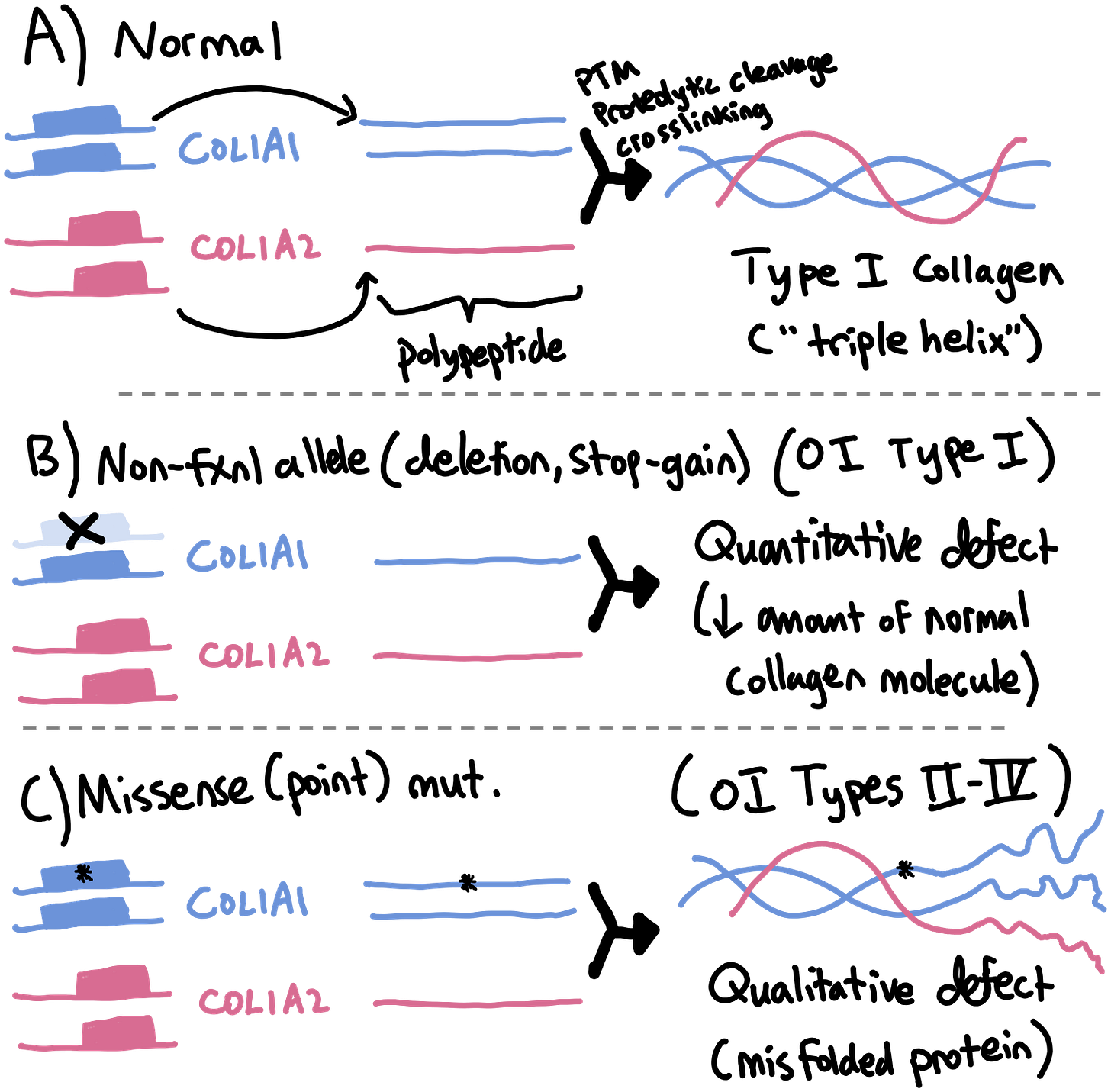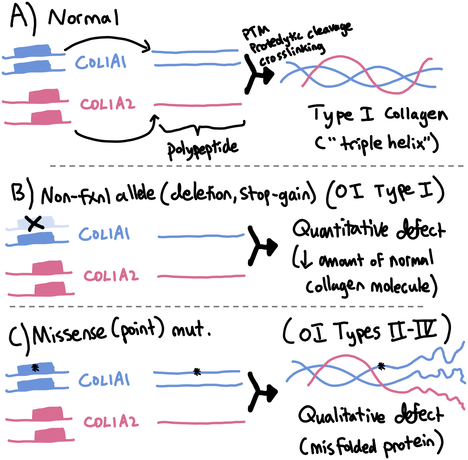 💡 The quote “It is better to be alone than to be in bad company” is as true for collagen as it is for our interpersonal relationships. COL1A1 alleles with missense variants are bad company!